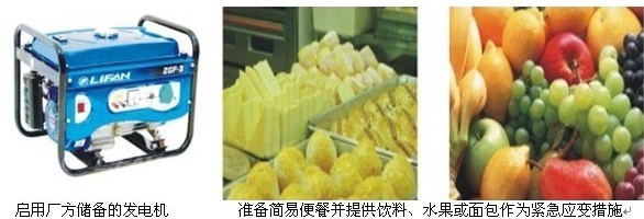 3、立即通知食品供應(yīng)商應(yīng)急供應(yīng)足夠的面包、方便面、餅干等干點及飲料;